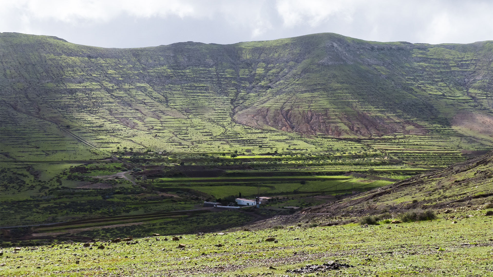 Die Wanderung von Tetir nach Tefía ist eine einsame Tour. Sie führt durch das Valle de Tetir, das sich nach winterlichen Regenfällen erstaunlich grün präsentieren kann. Das Highlight ist die Überschreitung des namenlosen Pass, der eine phänomenale Aussicht über die Ebenen von Tefía und die Westküste der Insel präsentiert. Rein mit dem Bus die Tour als Streckenwanderung zu unternehmen, ist ein schwieriges Unterfangen, da Tetir wie auch Tefía nur wenige male pro Tag mit einer Buslinie bedient wird. Es heisst also entweder ein zweites Auto platzieren, ein Taxi rufen, oder die Wanderung tour-retour zu unternehmen. Wer letzteres vor hat, kann sie auch mit dem Bus ab Tetir angehen. Die Buslinie, die den Bushub Puerto del Rosario mit El Cotillo verbindet, ist ausreichend getaktet.
