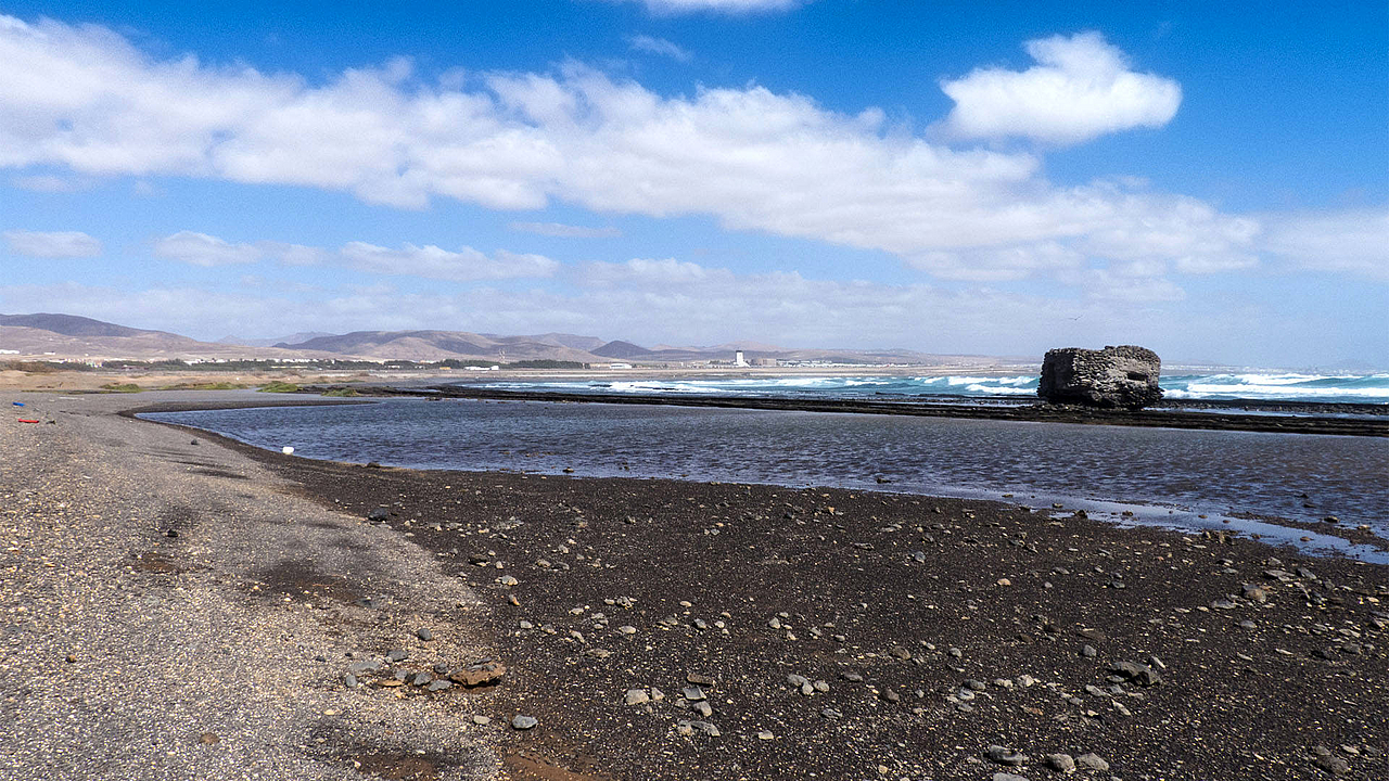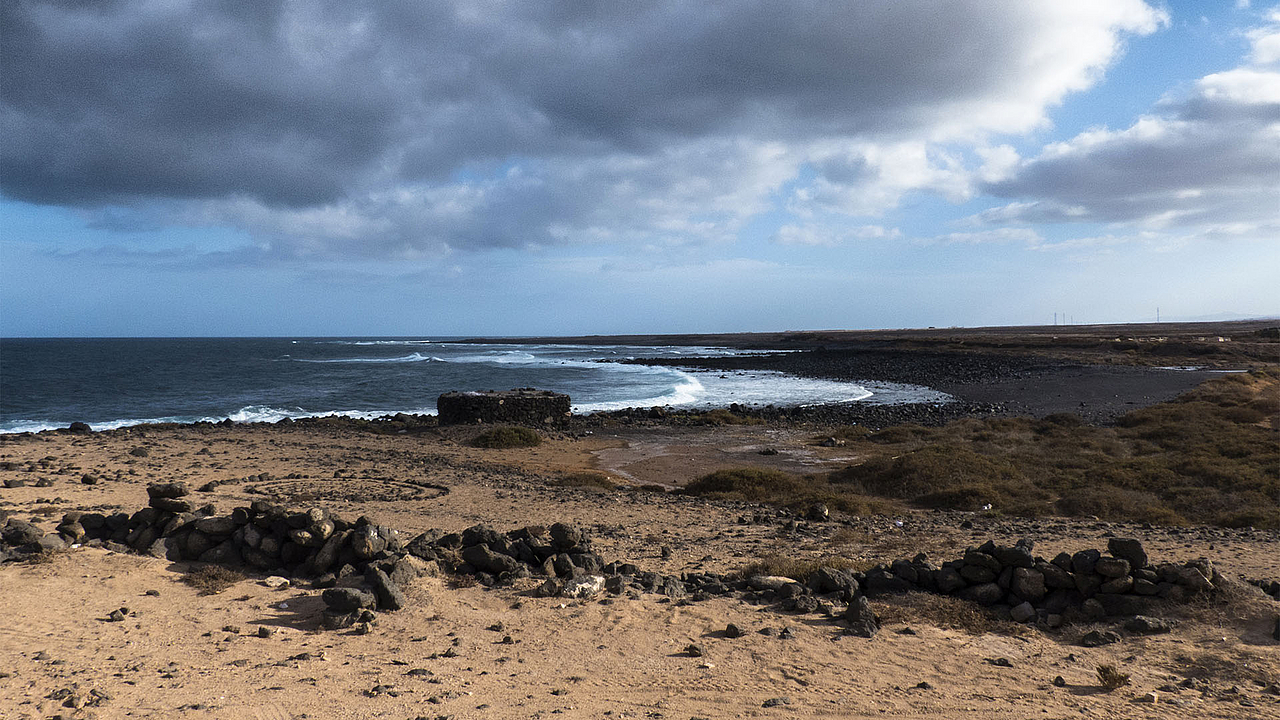 ► Wer weiss, wo die Rosa de Tinojay liegt, kann als exzellenter Fuerteventura Kenner bezeichnet werden. Das wunderbare Dünnengebiet El Jable bei Corralejo, endet am Montaña Roja. Dahinter beginnt sich die Landschaft deutlich zu verändern. Vorbei mit Sand und Dünen, im Hinterland Vulkanberge, die Küste unattraktiv mit Kiesstränden. Touristen sind hier kaum einmal zu finden. Canarios, die mit dem Wohnmobil über den August nach Fuerteventura kommen, stehen gerne an diesem Küstenabschnitt, denn an einigen Ort wird das toleriert. Bei den Stränden sind sie nicht so anspruchsvoll, denn ihnen steht der Sinn mehr nach Fischen, viel essen und trinken, mit der ganzen Familie faulenzen. Aus diesem Grund hat sich das Cabildo auch diesen Küstenabschnitt vorgenommen, um ein Sperrgebiet für Bodenbrüter einzurichten.