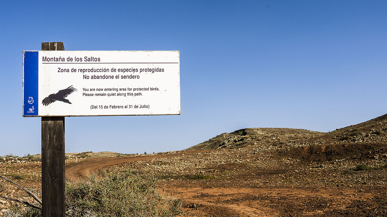 Einmal im Jahr fünf Monate, werden Schutzzonen für Brutvögel vom 15. Februar bis 31. Juli eingerichtet. Ein guter Teil der Sperrgebiete hat mehr publikumswirksamen Charakter. Sie werden in derart entlegenen und kaum bekannten Ecken errichtet, dass sie auch den meisten Insulanern unbekannt sind. Einige wenige sind in barrancos verortet, durch die ein Wanderweg führt, der aber auch kaum einmal begangen wird und wenn, die Zugvögel wohl kaum stören würde. Ein Viertel der Sperrgebiete liegen aber tatsächlich in sehr frequentierten Ecken der Insel. Touristen kümmern die Schilder mit den Betretungsverboten kaum. Wer erwischt wird, bekommt eine fette multa. In Spanien wird nicht lange diskutiert, Milde und Nachsicht gibt es keine. Das wirkt. Die Aufsicht des Medio Ambiente ist laufend unterwegs und auch Einheimische sehen es gar nicht gerne, wenn sie Urlauber über alles hinwegsetzen. Sie greifen gerne zum Mobiltelefon. Zum Schutz der Vögel und des Urlaubsbudgets die Betretungsverbote respektieren! Es gibt genug andere Ecken auf Fuerteventura, in denen auch zur Brutzeiten dem Birdwatching nachgegangen werden kann, siehe unten. Und für Wanderer, Trailrunner und Mountainbiker stellen die Betretungsverbote ohnedies keine Einschränkungen dar. Es gibt mehr als genug ebenso schöne Alternativen.