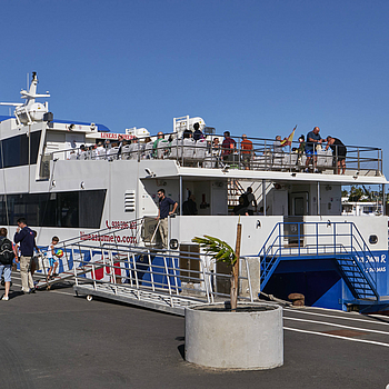 ► 2022 erweiterte die Rederei Fred. Olsen ihre Linie Corralejo (Fuerteventura) - Playa Blanca (Lanzarote), um die Personenfähre Buganvilla Express, einen kleinen Katamaran. Reine Personenfähren, im offiziellen Fährbetrieb, sind auf den Kanaren eine Seltenheit. Ausser Fred. Olsen setzt nur Líneas Romero zwischen Playa Blanca und Corralejo und Órzola (Lanzarote) und Caleta de Sebo (La Graciosa) auf diesen Typus, ebenfalls moderne, schnelle Katamarane. Líneas Romero legt seinen Fokus auf Touristen, reine Ausflugsfahrten zu Nachbarinseln beispielsweise, bei denen Urlauber selten ihren Mietwagen mitnehmen wollen, so sie einen haben. Nach La Graciosa würde eine Autofähre ohnedies keinen Sinn machen, denn auf der Insel dürfen nur wenige KFZ mit Sondergenehmigung unterwegs sein.