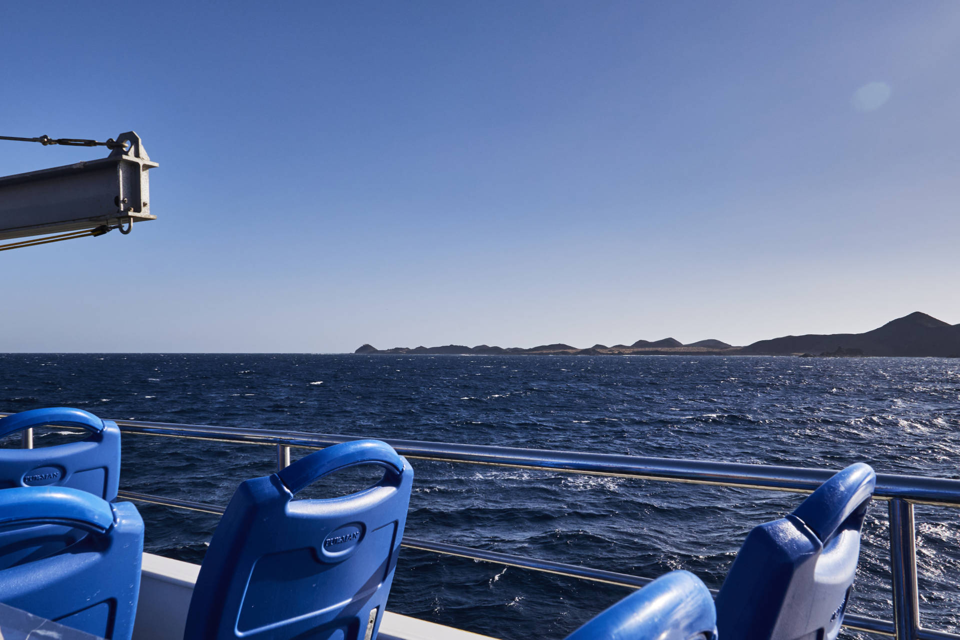 Irgendwann muss el capitán aber auf Nord drehen, wenn er Playa Blanca erreichen möchte und nicht Westsahara. Dann wird es ungemütlich. Die Wellen laufen querab an, das Schiff beginnt zu rollen und schaukeln, ein klassischer Magenausheber Kurs. Katamarane, durch den Hebel, sind in diesen Situationen besonders anfällig. Monohull Schiffe, wie die Vulcán de Tindaya, liegen hier deutlich ruhiger im Wasser. Heute, am 26. Dezember, bekommen die Passagiere jedenfalls etwas geboten. Einigen ist anzusehen, dass sie froh sind, wenn wieder Land unter ihren Füssen ist. Andere kommen erst richtig in Stimmung, wie eine Gruppe Deutscher, die unter Deck bereits zur frühen Stunde kräftig dem cerveza Alhambra Reserva 1925 von der kleinen Bordbar zusprechen. Ein exzellentes Bier aus Andalusien, so zur richtigen Uhrzeit genossen. Skipper werden mit grossem Interesse den starken Versatz der Katamaranfähre beobachten, die nach und nach die komplette Höhe, die gelaufen wurde, verliert. Der Kanarenstrom, Wellen und Wind sind hier am Werke. Schliesslich passiert die Vulcán de Tindaya den Buganvilla Express, Steuerbord auf Steuerbord, unüblich. Die Buganvilla bemüht sich, die Gäste möglichst angenehm nach Playa Blanca zu bringen. Passagiere, die unbeirrt am Oberdeck blieben, eine solide wasserdichte Windjacke sollte dabei sein, geniessen jedenfalls einen wunderbaren Ausblick über die Meerenge und die Isla de Lobos, bis sich später der markante Höhenzug des Monumento Natural Los Ajaches auf Lanzarote vor ihnen aufbaut. Es ist nicht zu bestreiten, die Passage mit dem Buganvilla Express hat noch etwas von echter Seefahrt. Besonders Fahrtensegler werden sich sehr wohl fühlen. Eine Passage bei diesen Bedingungen mit dem Bocayna Express oder der Vulcán de Tindaya wäre hingegen bei den aktuellen Bedingungen völlig unspektakulär. Unbeirrt laufen sie auf direktem Kurs, der Fährgast geniesst ein ruhiges Fährerlebnis.