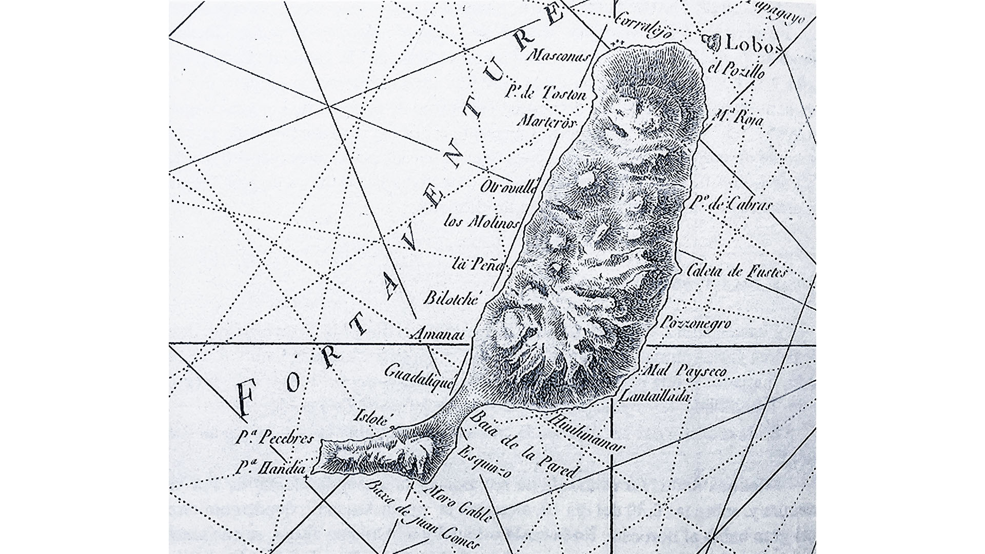 Das erste Mal kartografierte den Hafen Caleta de Fuste der französischer Mathematiker und Seemann Jean-Charles de Borda exakt. 1780 präsentierte Borda ein Kartenwerk der kanarischen Inseln: "La carta náutica de las islas Canarias". Borda war ein akribischer Mensch und ging wissenschaftlich vor, protokollierte wie er Positionen vermass, um es für jeden Vermesser nachvollziehbar zu gestalten. In seinem Notizbuch hielt er auch fest, wie er zu den Bezeichnungen von Orten und Häfen kam, die sein Kartenwerk ausweisen. Dabei ging er sehr pargamtisch vor, segelte nach den Vermessungsarbeiten an Land und befragte die Insulaner, wie sie denn die vermessenen Ort nennen würden. Da er als Franzose grösste Probleme hatte, das Spanisch der Majoreros zu verstehen, notierte er viele Namen falsch. Er musste sich auf seine Deutung verlassen, denn buchstabieren konnte kaum ein Majorero: 90% waren Analphabeten, Ende der 1970iger waren es immer noch gut 70%. So kam u.a. der "Punta de Pesebre" zu seinem eigenartigen Namen. Für Caleta de Fuste berichtet "Caballero de Borda" in seinem Notizbuch, dass es sich um einen kleinen, sehr geschäftigen Hafen samt Mole und kleinem Wehrturm handeln würde. Nach seiner Anlandungen hätte ihm die Bevölkerung gesagt, dass dieser Hafen "Caleta de Fustes" genannt würde, was er auch so auf seiner Karte vermerkte. Das "s" ging mit der Zeit verloren und der Ort wurde zu "Caleta de Fuste", umgangssprachlich auch "El Castillo" genannt. Weit verbreitet auf Fuerteventura, das Majoreros Orte und Strände ganz anders benennen wie z.B. den Playa del Castillo in El Cotillo.