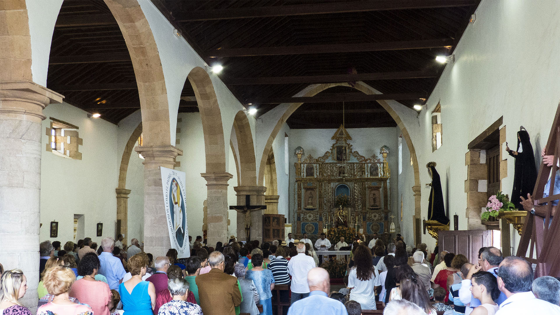Schon im Jahre 1702 wurde der erste Gottesdienst abgehalten. Wahrlich eine Rekordbauzeit für die Insel. Der Glaube muss intensiv gewesen sein oder vielleicht war die Aussicht, nicht mehr jeden Sonntag nach Pájara marschieren zu müssen, derart motivierend. Über die Jahrhunderte wurde die Kirche immer weiter ausgebaut und die Ermita wuchs zu einer stattlichen Kirche heran. Auch im Inneren wurde es immer schöner. Die Iglesia San Miguel Arcángel ist zwar an sich schlicht, wird jedoch von einigen sehr prunkvollen Elementen bestimmt. Heraus sticht der herrliche Altar, den sich die Bewohner Tuinejes leisteten und vom kanarischen Meister Juan Bautista Bolaños um 1780 angefertigen liessen. Ein prachtvoller Rokoko Altar aus kunstvollen vergoldeten Schnitzereien, den Juan Bautista Bolaños mit Gemälden komplettiert. Das imposante Werk dominiert das Kirchenschiff. Als besonders praxisnah erwies sich der unbekannte Schöpfer des Christus am Kreuz. Er ist nämlich völlig modular und flexibel aufgebaut. Er kann vom Kreuz genommen werden und durch die beweglichen Arme auch als liegender Christus eingesetzt werden. Es können also zwei Szenen nachgestellt werden: Christus am Kreuz und liegend nach der Abnahme vom Kreuz. Das Geld sass nie locker auf der armen Insel, man war daher sehr erfinderisch.