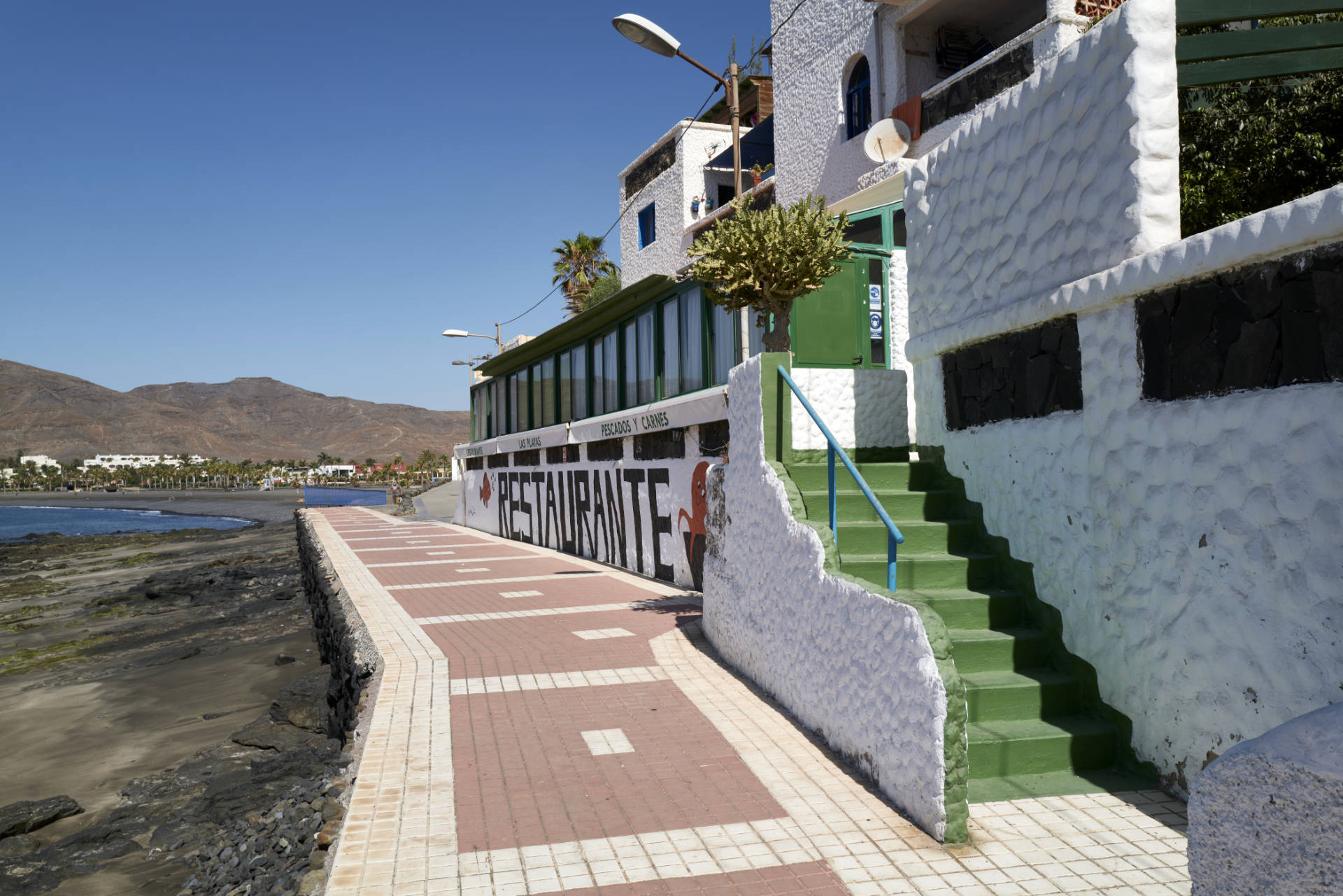 Las Playitas sticht aus den Fischerdörfern von Fuerteventura heraus. Die weissen Häuser, die an den kleinen Hügel Montañeta del Cuevón gebaut wurden, könnten auch auf einer griechischen Insel liegen. Den Fuss des Hügels säumt eine kleine, nette Hafenpromenade und eine massive Mole, die darauf hinweist, dass hier einmal grössere Fischerboote angelegt haben, um den reichen Fang zu entladen. Heute fahren nur noch kleine Boote hinaus, die wie eh und je nach der Fahrt auf den Strand gezogen werden. Der Paseo im Hafen ist einfach und hübsch, kaum touristisch und fest in der Hand der 832 Einwohner der Ortschaft (2018). Unter der grossen alten Tamariske am Paseo sitzen nachmittags ältere señores und plaudern angeregt. Die señoras machen es sich mit transportablen Liegestühlen auf der Hafenmole bequem und gehen den neusten Klatsch durch. Eine Handvoll einfache Restaurants gibt es auch.