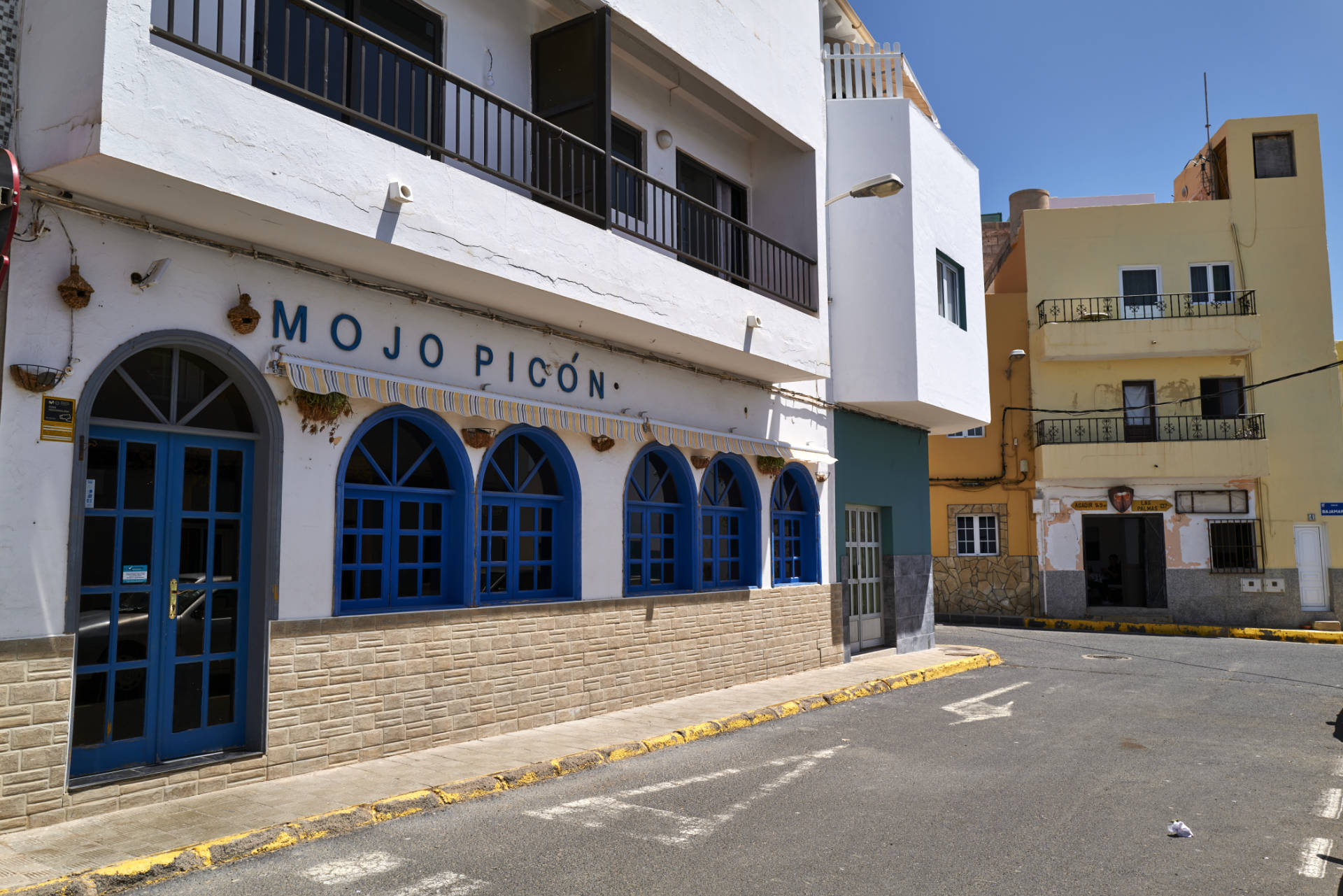 Am nördlichen Ende des Playa de Tarajalejo liegt der historische Ort. Jahrhunderte alte Häuser, die Hafenmole, die schon 1592 erwähnt wird. Der Kern des Ortes liegt windgeschützt an einen Hügel geschmiegt, der vor dem Nordost Passat schützt. Windstill ist es in dem Teil des Ortes. Der neue Teil von Tarajalejo liegt oberhalb am offenen Feld, wo es ordentlich fegt. Dort wurde eine (einst) schicke Appartementanlage für Gringos gebaut. Der Traum von den vielen reichen Ausländern, platzte wie überall sonst auf der Insel. Nun ist es seelenlose Schlafstätte für extranjeros aller Art und Saisonarbeiter.