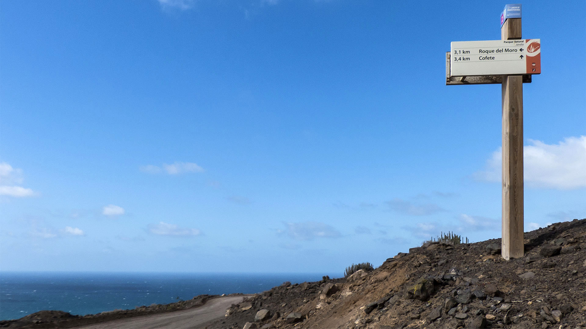 Zwar bietet der Degollada de Agua Oveja (231 m), der bei der Fahrt nach Cofete unweigerlich passiert wird, einen grandiosen Ausblick auf Cofete und seine Strände, aber es geht noch eine Nummer besser. Touristen, die vom schönen Strand Playa de mal Nombre die Piste hinauf zum Mirador de los Canarios (355 m) wandern (Zufahrt gesperrt), bekommen Cofete in Cinemascope.