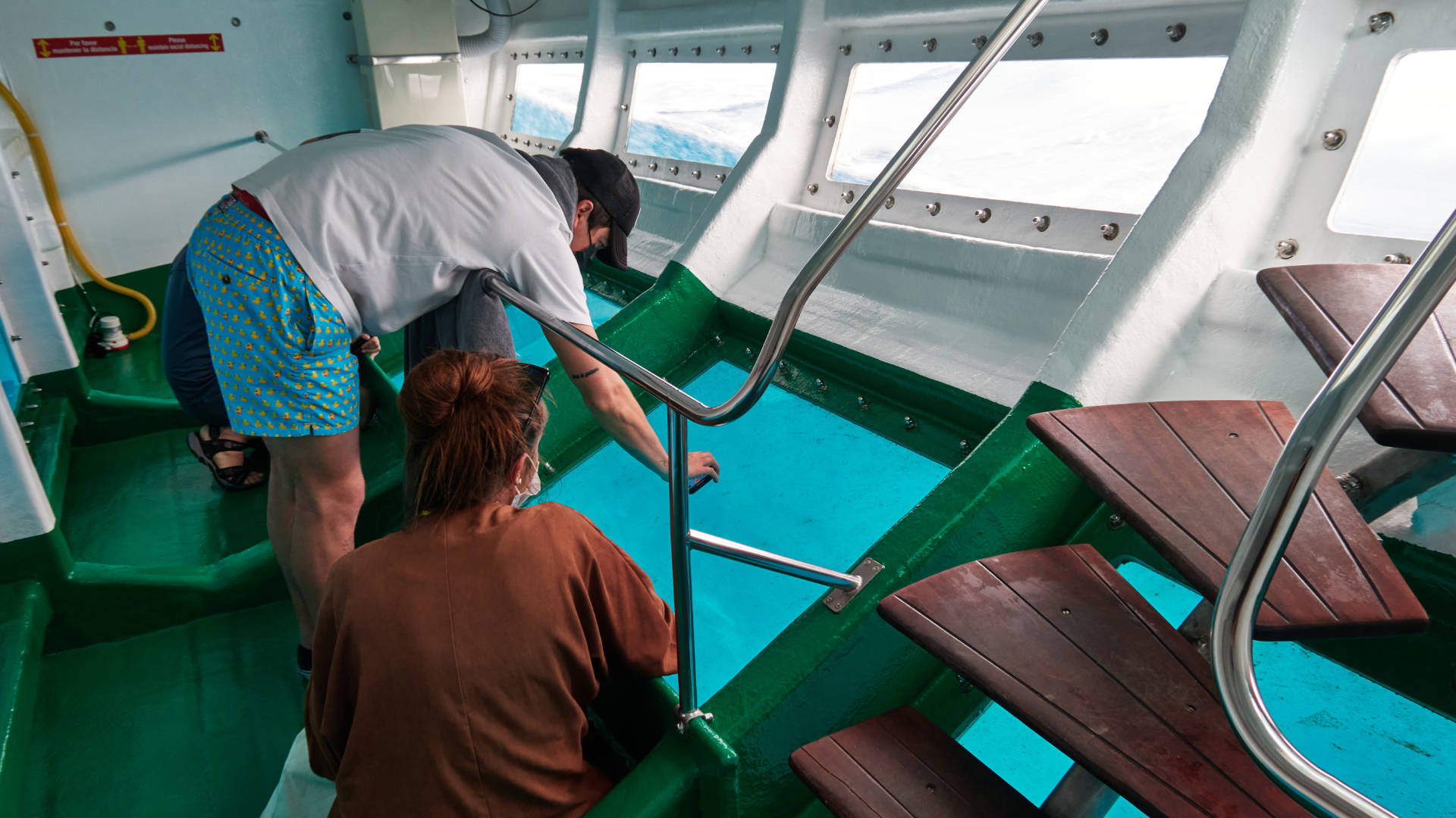Vom Fährhafen in Corralejo startet die offizielle Fähre hinüber zur Isla de Lobos. Es kann online gebucht werden oder an zwei kleinen Verkaufsständen ein Ticket erworben werden. Das eine weisse Häuschen der Fährgesellschaft findet sich am Tourist Office von Corralejo am Playa la Clavellina, das andere Häuschen an der Cofradía am Hafen von Corralejo. Es steht als einziges bewusst als letztes und abseits der Touristenfänger Häuschen. Das Ticket wird auf eine bestimmte Uhrzeit gebucht. Das hat aber nicht viel zu sagen. Ist das Schiff nicht überfüllt, wird man immer mitgenommen, egal welche Uhrzeit am Ticket steht. Am Wochenende ist die Fähre sehr voll. Dann fahren viele Einheimische zum Baden in die schönen Buchten hinüber.