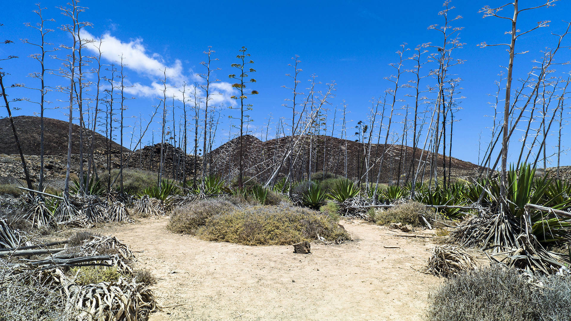 Ein kurzes Wegstück danach, werden die schönen Salzwiesen Las tres Hermanas und Las Lagunitas erreicht. Streng geschützt und betreten verboten. Sie waren reiche Geldquellen, da aus ihnen Soda und Kali gewonnen werden konnte. Am Ende der Salzwiesen findet sich ein Kalkofen, der ebenfalls von Lamberti und Zala betrieben wurde. Auf halber Strecke zum Leuchtturm trifft der Wanderer, etwas abseits des Weges, auf einen kleinen Agavenwald. Hinter ihm liegt versteckt die sandige Bucht Playa de la Arena, in der eine Welle bricht, die absoluten Surfinsidern vorbehalten ist.