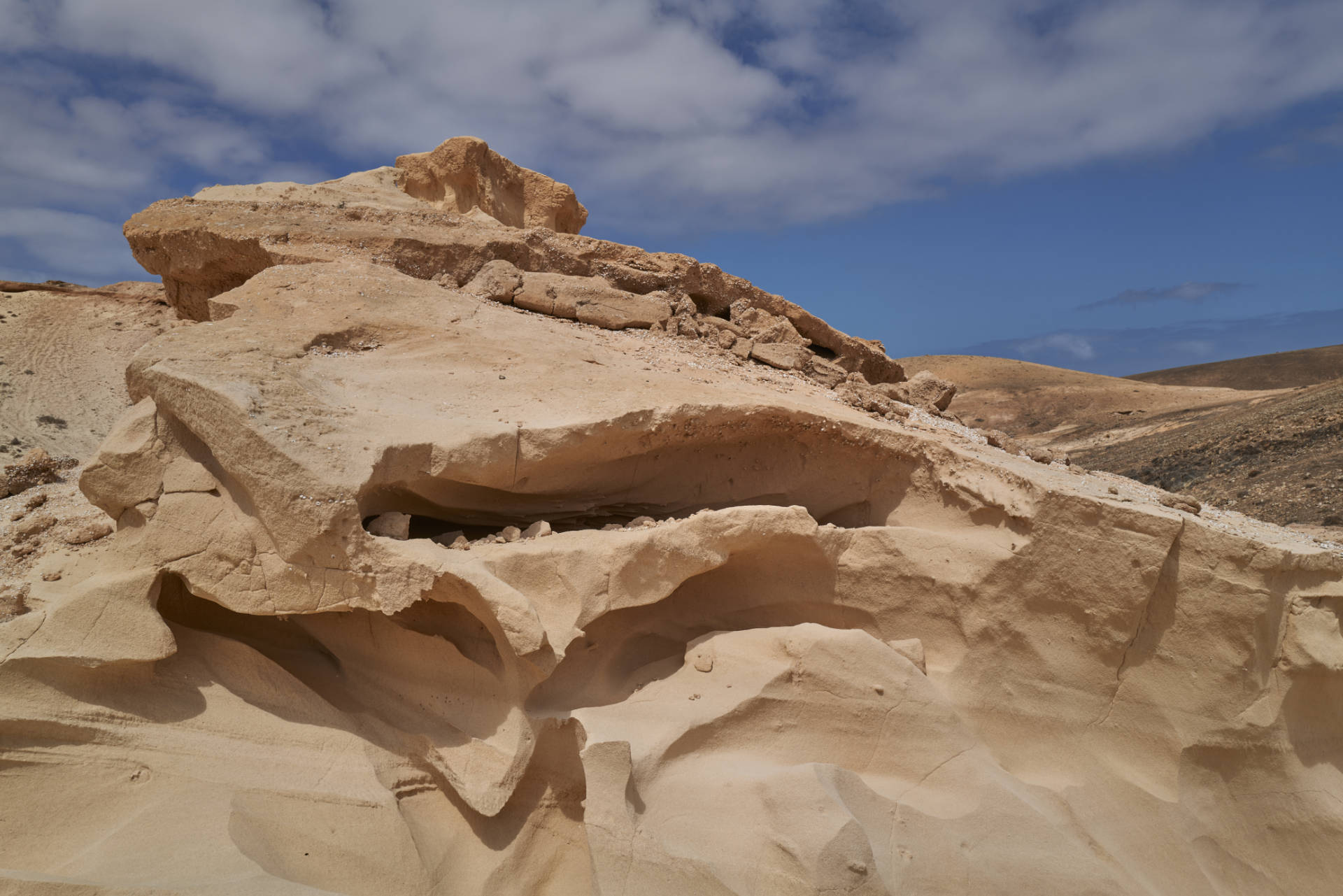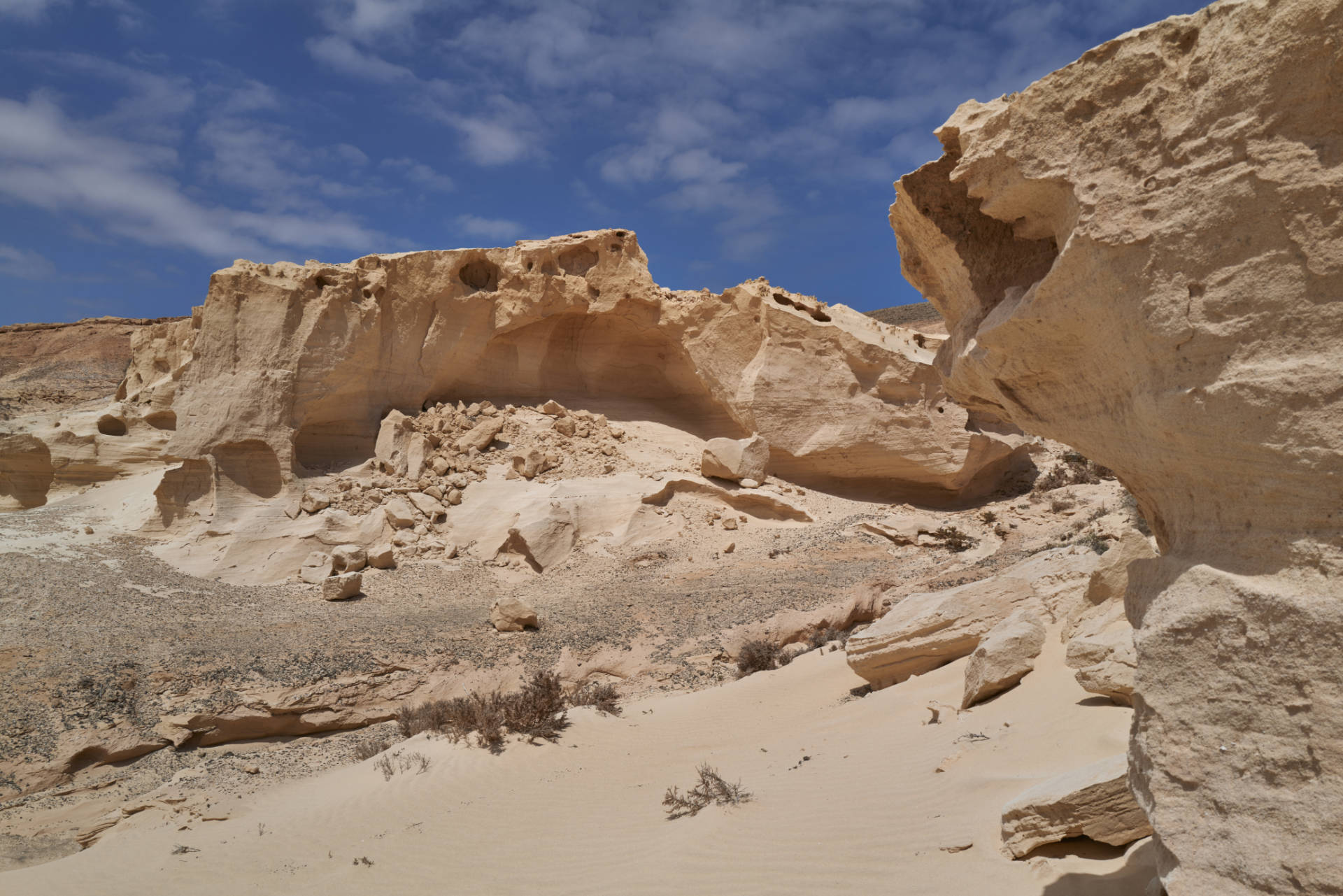 Durch das Alter der Küste hatte die Meeresbrandung viel Zeit, spektakuläre Höhlen in die Küste zu schlagen. Vor allem bei den unteren Sedimentbereichen haben die Atlantikwellen leichtes Spiel. So entstanden die Cuevas de Ajuy oder die sensationelle Cueva de la Ballena, die Höhle des Walfisches, die aber nur bei Ebbe und Niedrigwasser und geringer Brandung erreicht werden kann.