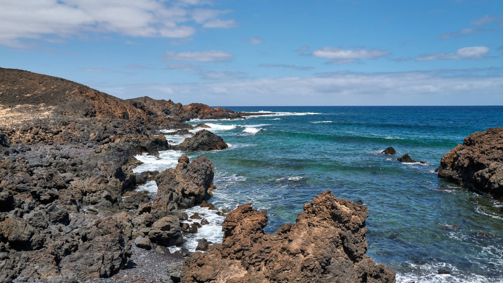 Die Caleta del Vino ist eine unscheinbare Bucht. Ihr Name gibt Rätsel auf. Im zentralen Teil hat sich ein kleines Stück Strand aus schwarzem Lavasand gebildet, an dem sich auch Salzpflanzen wohl fühlen. Vor der Bucht breitet sich die Ostküste von Lanzarote aus. Vom weiss in der Sonne blitzenden Playa Blanca bis zur Costa Teguise reicht der Ausblick.