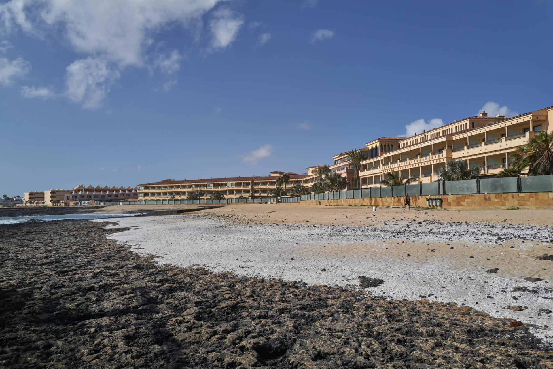 Die kleine Bucht am Strand, wie der Name schon sagt, Puerto Remedio, wurde einmal als "Ausweich-Hafen" verwendet, ist ruhig und gut zum Baden geeignet. Man könnte sich den Strand ohne den extrem grossen Hotelkomplex schöner vorstellen. Nach den beiden Stränden Playa de la Barreta und Playa Puerto Remedio endet die Bebauung schlagartig und das Naturschutzgebiet El Jable öffnet sich, die grösste Wanderdünen Landschaft Europas. Der Begriff "El Jable" ist übrigens ein Relikt der normannischen Eroberer. "Jable" leitet sich vom französischen "Sable" ab, also Sand.