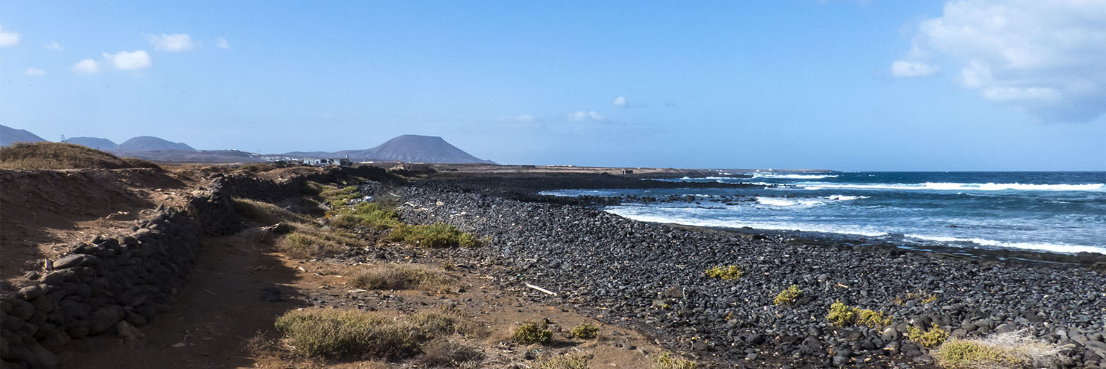 Der Playa de las Valdivias ist eine wilde Mischung aus etwas Lavasand, Lavakies, dann wieder Lavafels. Es ist interessant an ihm entlang zu spazieren. Er liegt zwischen den Casas de las Llanadas, also den Häusern des Flachlandes und dem Punta del Bajo de Tío Viña. Der Strand ist mit einem hohen und dicken Wall vom vorgelagerten Land abgegrenzt. Dort liegen Felder, die von den Gehöften der Casas de las Llanadas bewirtschaftet werden. Der Wall dient einerseits dazu, dass bei heftiger Brandung kein Meerwasser auf die Felder gelangt, andererseits sollen sie verhindern, dass das Wasser aus dem Barranco de Tinojay, der an den Gehöften ins Meer mündet und auf die Felder abgeleitet wird, ins Meer abfliesst. Hier liegt uraltes Kulturland, auf dem mit harter Arbeit dem Boden Ertrag abgerungen wurde und teilweise noch wird.