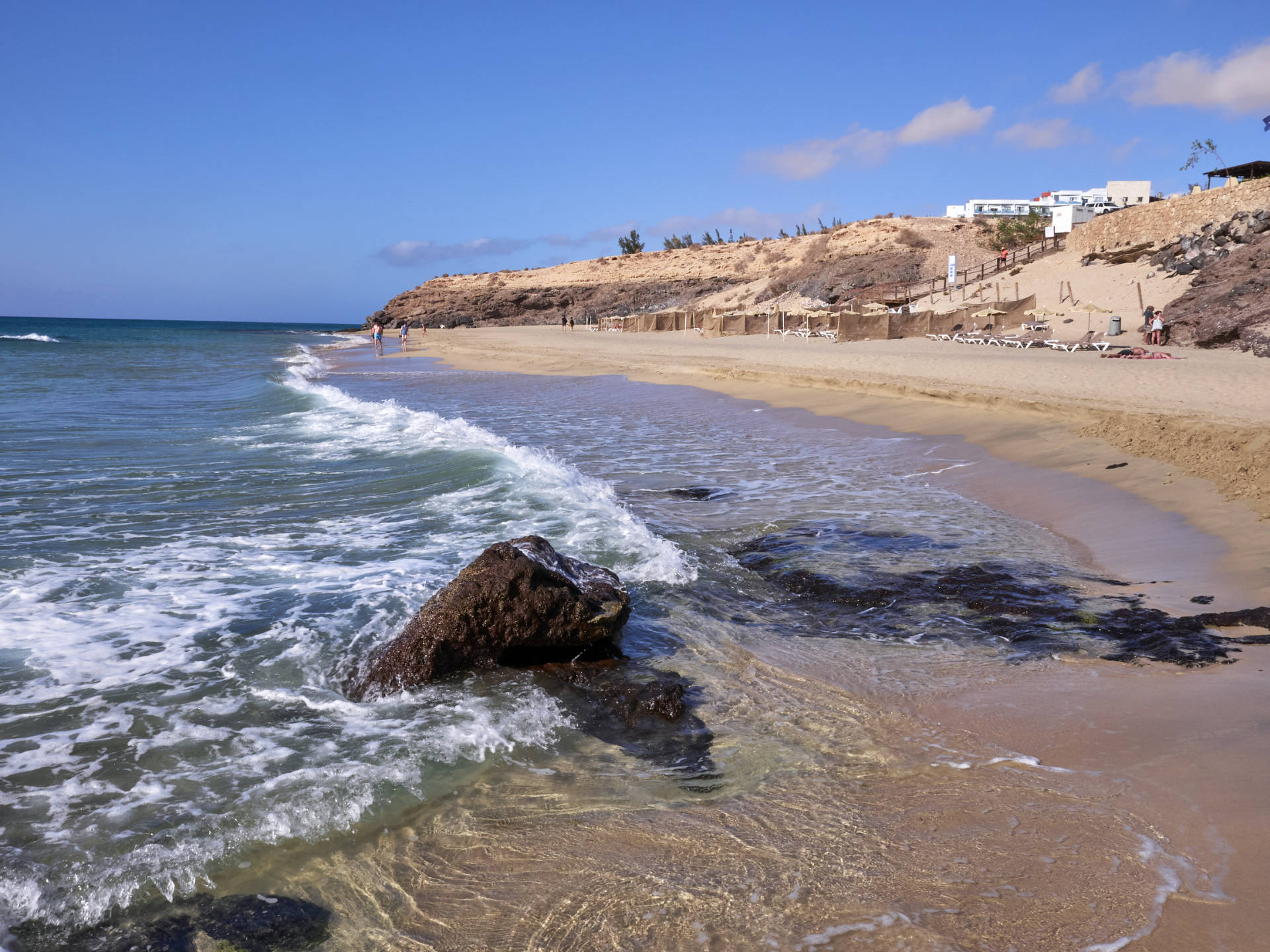 Im Gegensatz zu den Playas de Costa Calma und dem Punta de los Molinillos, geht es am Playa de Jandía aka Playa Esmeralda deutlich ruhiger zu. Lediglich vom Hotel H10 Playa de Esmeralda ist der Strand direkt zu erreichen. Wer dort nicht wohnt, muss einen Fussmarsch absolvieren oder den Mietwagen nehmen. Das ist dann den Meisten doch zu mühsam. Wer also einen Strand bei Costa Calma sucht, der ruhiger ist, sich gut zum Sonnen und Baden eignet, auch ggf. vor einem kleinen Spaziergang nicht zurück schreckt, ist dort richtig.