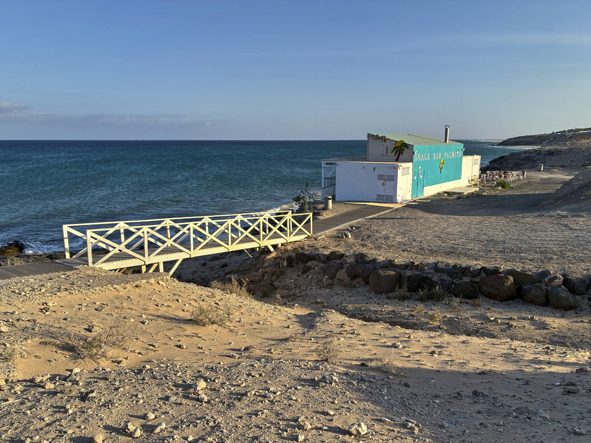 Direkt am Strand bietet sich für gastronomisches eine chiringuito an, die auf der kleinen Klippe Risco del Gato mit schönen Blicken über Strand und Meer lockt. Mehr Gastronomie, umfangreiche Einkaufsmöglichkeiten, wie auch eine Apotheke, deutsche Ärzte, Mietwagenverleih, Rental für e-Bikes, Surfequipment und mehr finden sich im Ort Costa Calma über dem Strand.