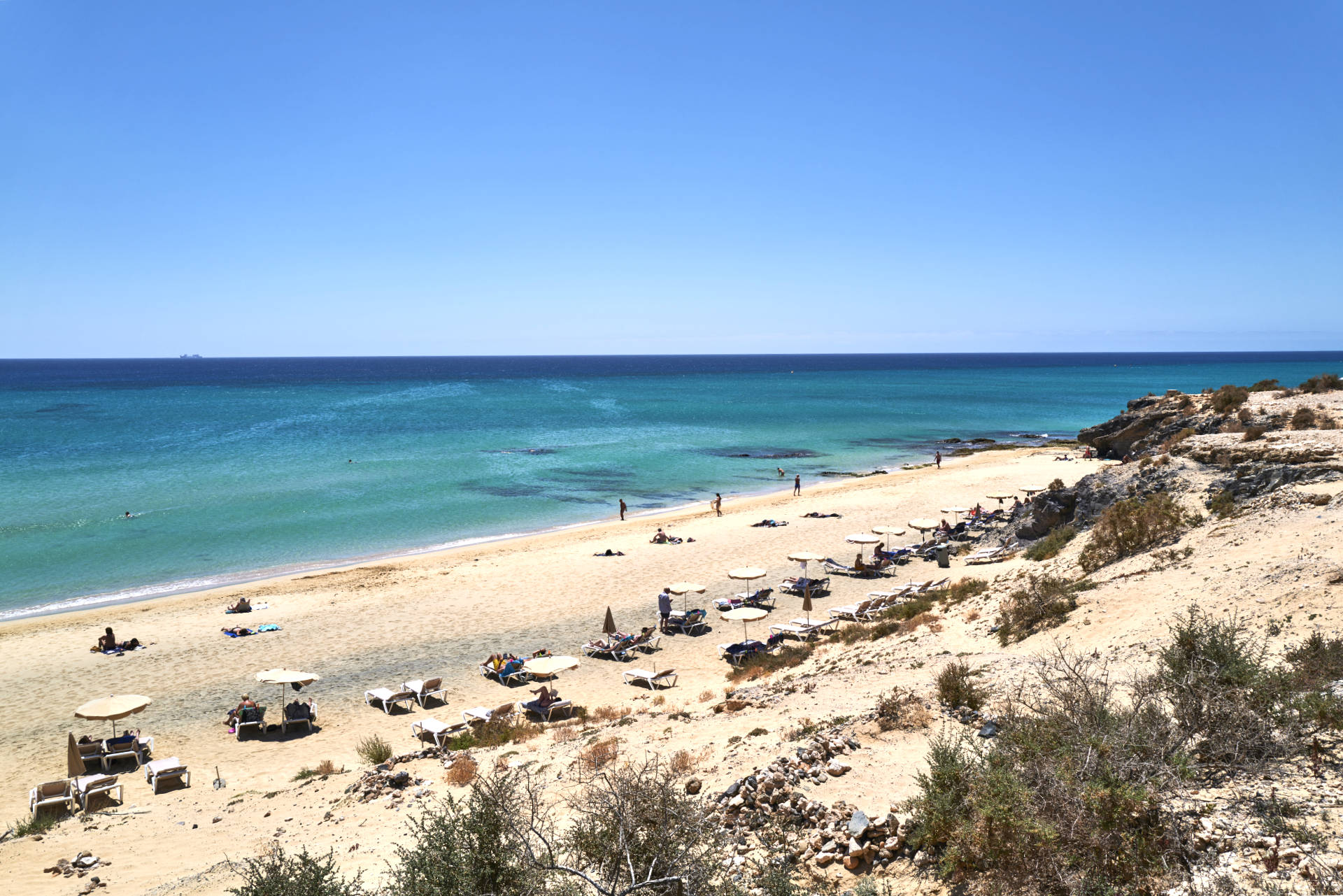 Der Strand liegt am südöstlichen Ortsrand von Costa Calma.