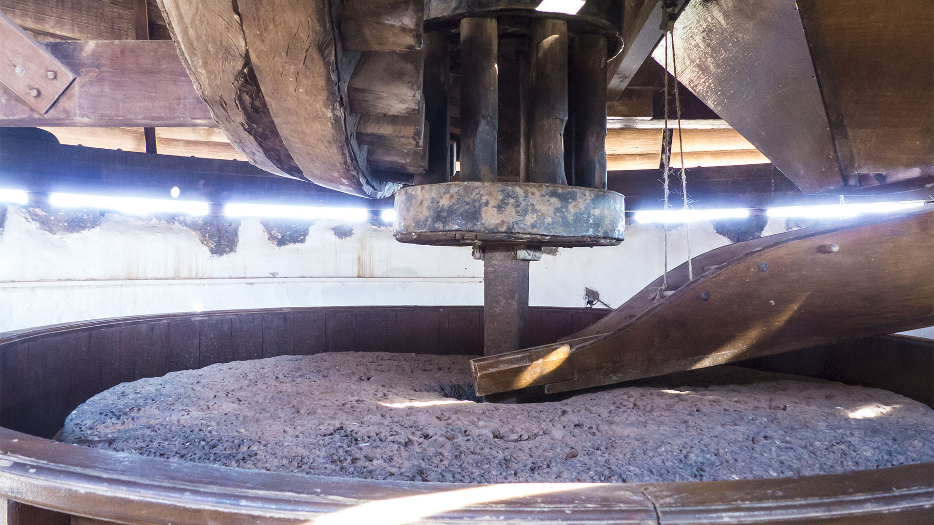 Was man in Museum Los Molinos Centro de Interpretación in Tiscamanita nicht zu sehen bekommt, ist eine funktionsfähig erhaltene Ochsenmühle. Warum auch immer, trotz des heftigen und allgegenwärtigen Windes, wurden die Mühen von Fuerteventura, wie auch die Schöpfbrunnen, Jahrhunderte von Ochsen, Maultieren, Kamelen und nicht von Wind angetrieben. Eine historische Ochsenmühle ist im Ecomuseo la Alcogida in Tefía zu besichtigen.